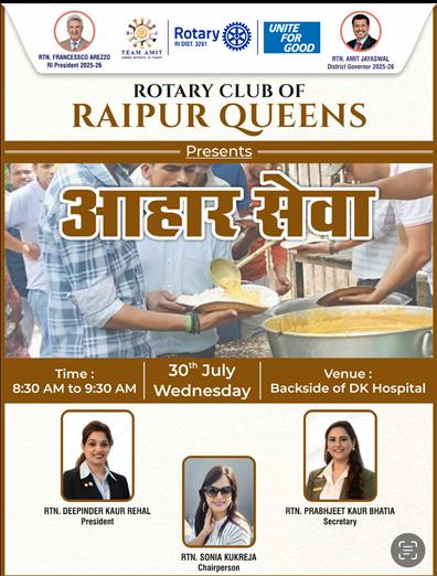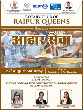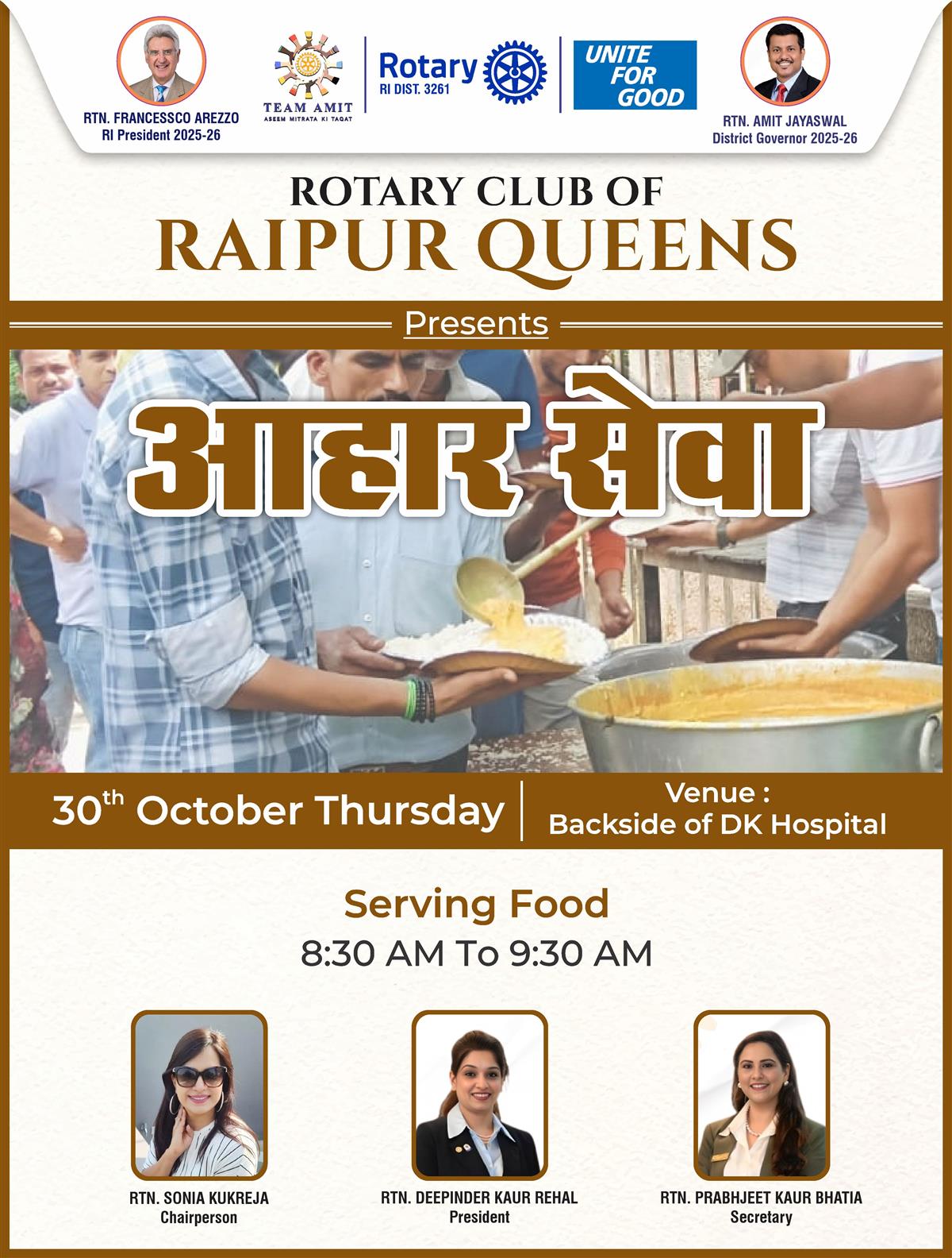 Rotary Club of Raipur Queens has been consistently running Aahar Se. . .