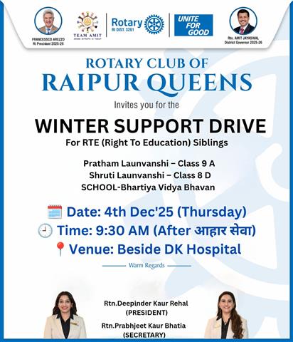 The Rotary Club of Raipur Queens has been consistently organizing i. . .